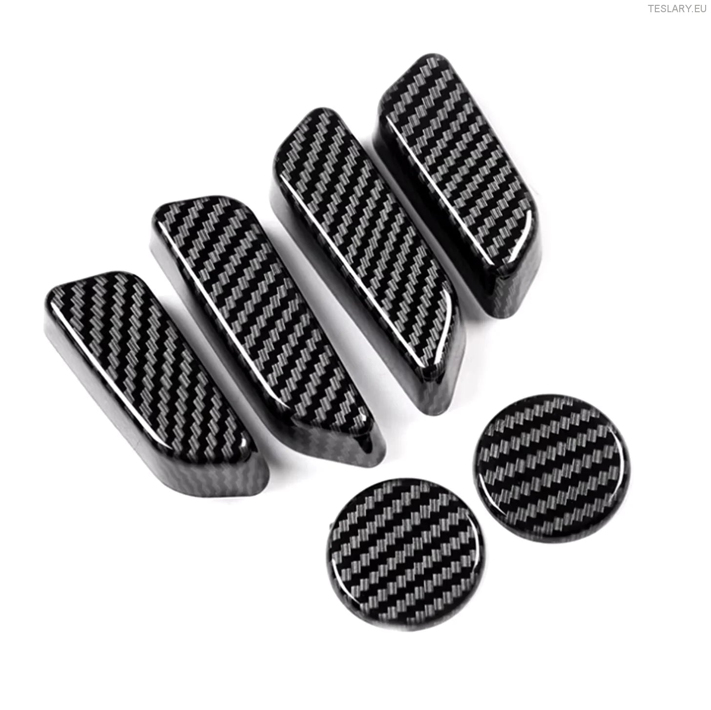 Tlačítko ovládání sedadla Tesla 3/Y Plné 3D ochranné kryty stylu uhlíkových vláken v černé, červené nebo modré