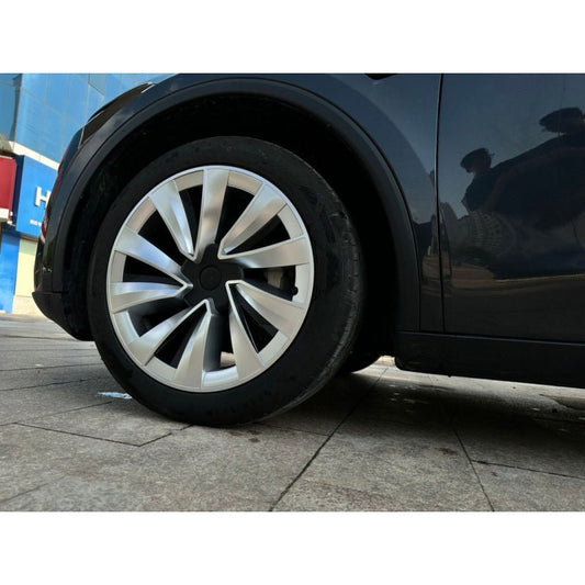 The 19-Inch Wheel Covers for The 2025 Silver & Black Model Y Feature a Design That Mimics The Look of 20-Inch Wheels