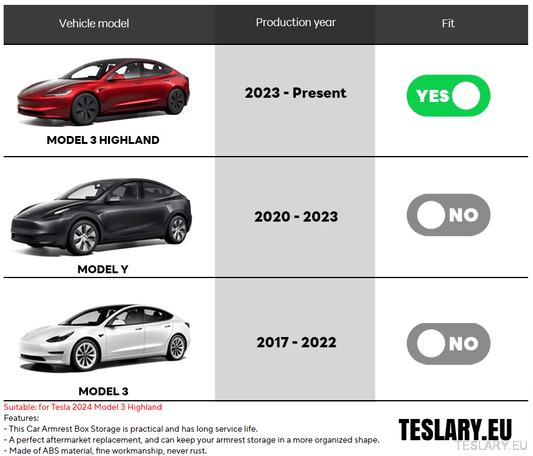 Tesla Modelo 3/Y ARMES ARMO HENDEN STORGE SLIDE ESTILO